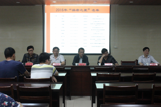 会上,图书馆对根据信息库整理出的这一年中积极借阅图书的名列前十名的同学予以颁奖,授予“读者之星”荣誉称号。并号召广大同学极借阅图书,博览群书,为成为栋梁之才打下坚实的基础。