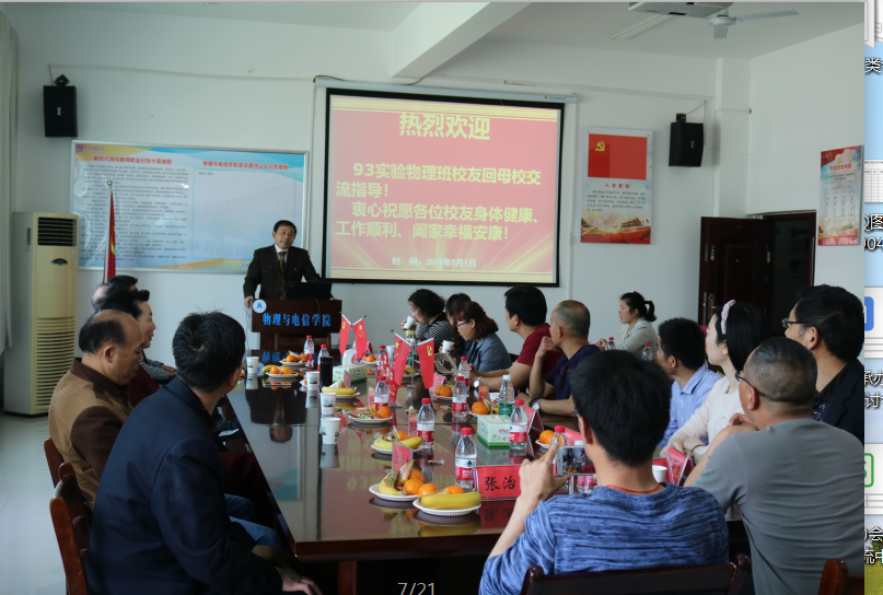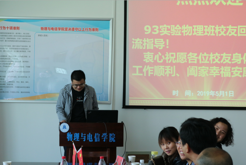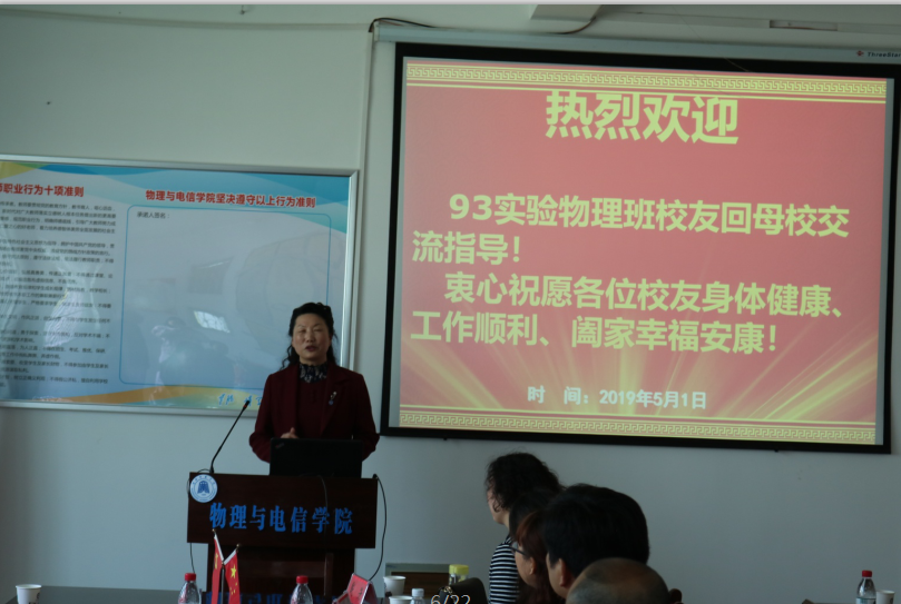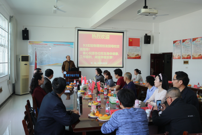 (通讯员:江俊新)5月1日,阳光普照,喜气盈盈。物理与电信学院迎接九六届物理实验9301班同学回母校。物电学院领导和老师在物电大楼召开了座谈会。物电学院领导、老师与阔别23年的同学们亲切交流。师生畅谈情谊,叙旧话新。