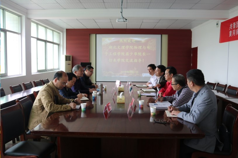 为学习贯彻全国教育大会精神,加快建设一流本科教育,促进校际交流,探讨二级学院建设与发展,2019年5月7日,湖北文理学院物理与电子工程学院屈少华院长一行来我院考察学习。我院党总支书记杜杰、院长兰智高、副院长徐火希、物理系副主任刘华忠、教学示范中心教师唐焱明接待了屈院长一行。