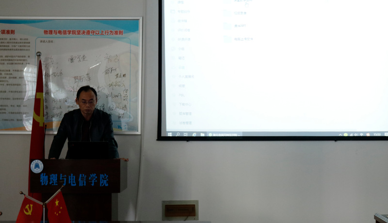 丁如春副院长通报了最近申报校级一流课程建设情况,鼓励老师积极参加网络课程建设,成为课程负责人,并现场演示在超星平台如何建课、上传资料、录课、上课。