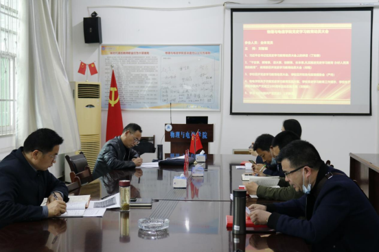 2021年4月1日下午,物理与电信学院党总支在物电楼205室召开党史学习教育动员大会,物理与电信学院党总支副书记刘智能同志主持召开,学院全体党员参加。