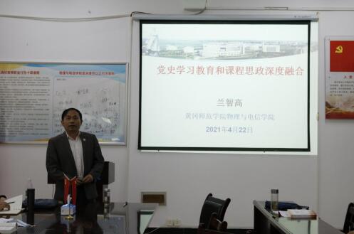 为切实做到学史明理、学史增信、学史崇德、学史力行,4月22日下午,学院在物电楼205会议室举行党史学习教育活动,院长兰智高教授以《党史学习教育和课程思政深度融合》为题,为全院全体党员讲授专题党课。学院党总支书记杜杰、党总支副书记刘智能、副院长丁如春、副院长徐火希出席活动。