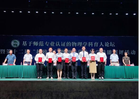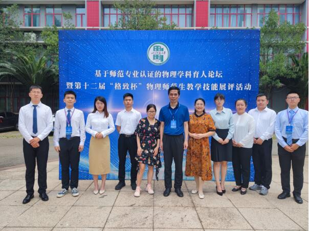 2021年7月23日至25日,基于师范专业认证的物理学科育人论坛暨第十二届“格致杯”物理师范生教学技能交流展示活动在四川师范大学举行。经过紧张激烈的比赛,来自我校物理与电信学院的8名选手表现出色,成绩喜人。在教学技能交流展示活动中,田博雅荣获本科生组一等奖,王卓异荣获本科生组二等奖,李中豪、徐健荣获本科生组三等奖,江超荣获研究生组二等奖,刘传宁、赵鑫、黄俊荣获研究生组三等奖;在创新实验设计与自制教具展示活动中,李中豪荣获二等奖,刘传宁、江超荣获三等奖;我校荣获“优秀团体奖”。