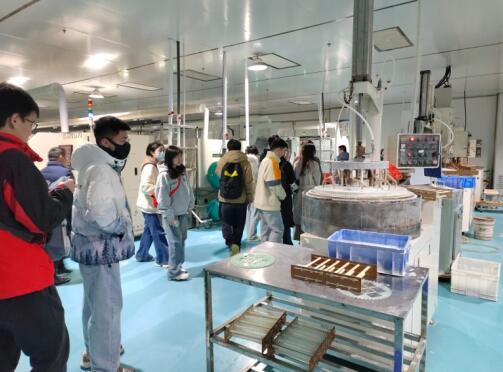 在园区领导的带领下,师生们参观了园区的多家企业,对产品的生产流程及生产车间设备有了大致的了解。