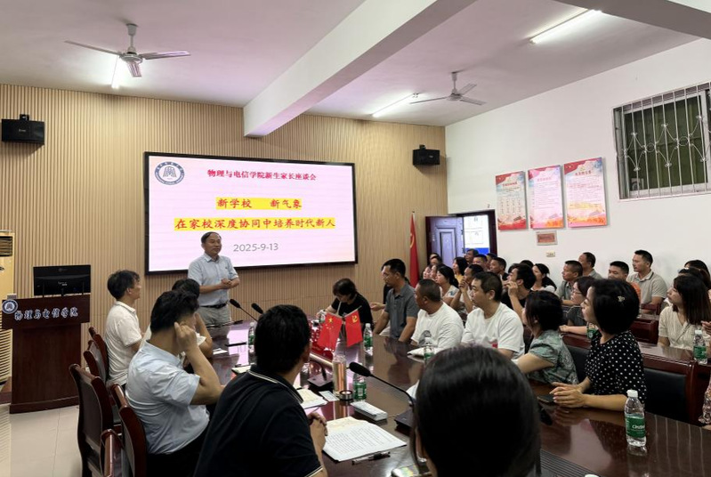 为深化家校协同育人实效,构建畅通互信的合作桥梁,9月13日晚,物理与电信学院于电信楼205会议室召开了2025级新生家长见面会,会议由学院党委副书记王世伟主持。会议室座无虚席,来自各地的新生家长与学院领导班子、班主任、辅导员齐聚一堂,共话育人蓝图,开启家校共育新篇章。