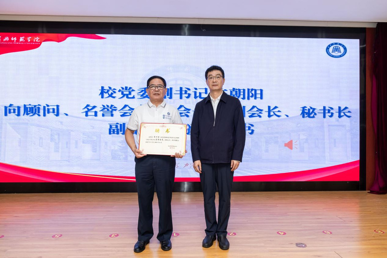 校党委副书记陈朝阳为校友分会顾问、名誉会长、会长、副会长、秘书长和副秘书长颁发聘书。